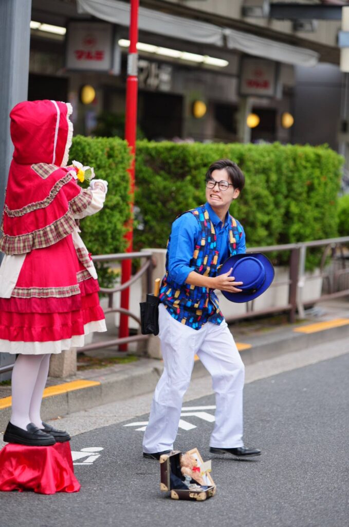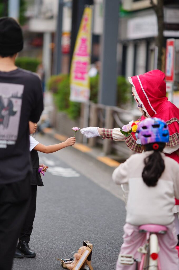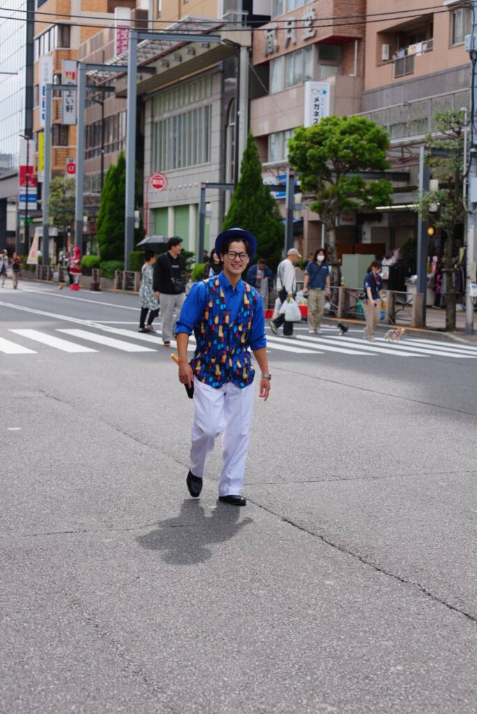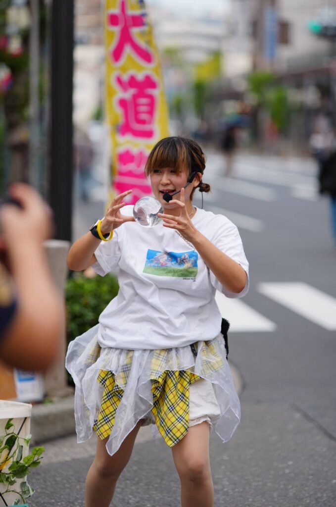 そして、軽快な音ともに、笑顔とハプニングを振りまきながら歩行者天国を歩き回るのは、マジシャンHIROMU。大道芸は初めて、とのことでしたが、たくさんのひとと触れ合いながら、笑顔の時間を届けていました。