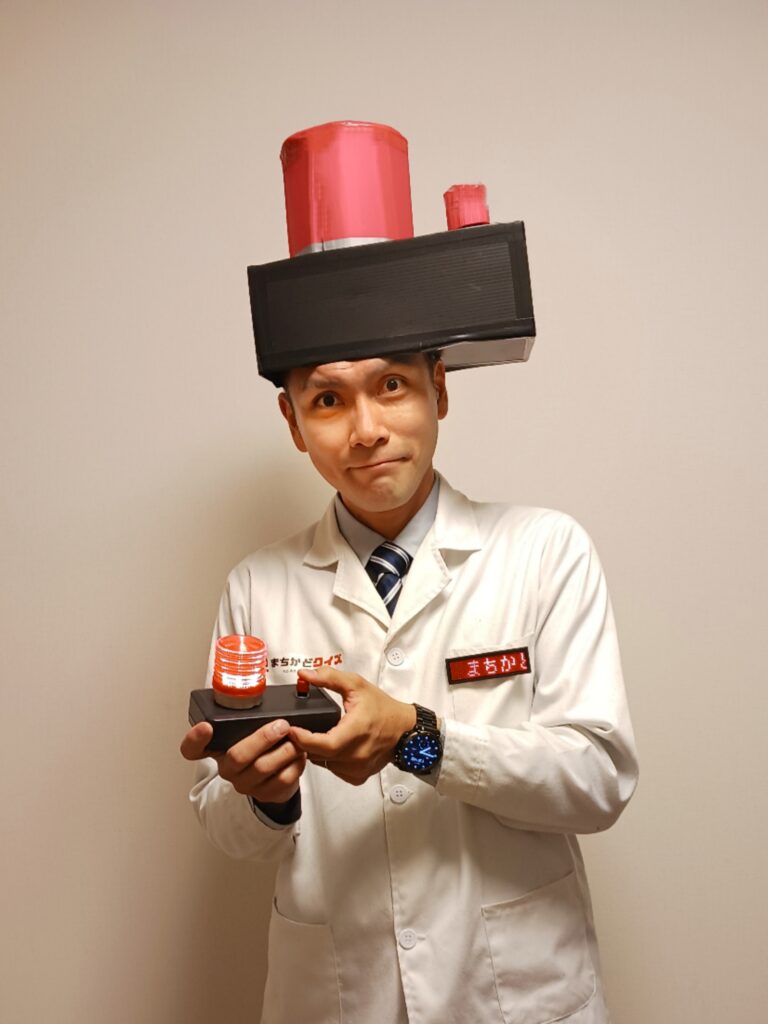 AI搭載のハイテクロボット(風の着ぐるみ)です。