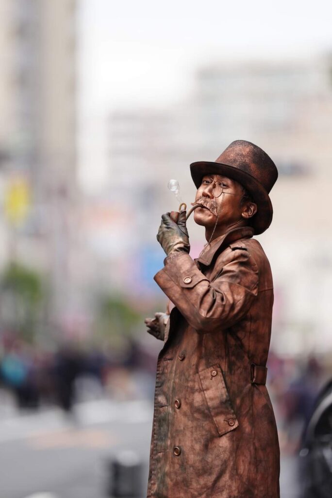 俳優“塚越光”による、探偵を模した銅色スタチュー。