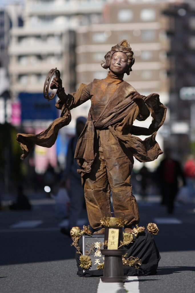 穏やかな日差しのなか、亀戸十三間通りに佇むのは『自動人形の目覚め』。 白に包まれた西洋のお人形。ふとした瞬間に見せる人間的な表情に心を掴まれてしまう。おはようからおやすみまで目が離せない、注目のパフォーマンス。