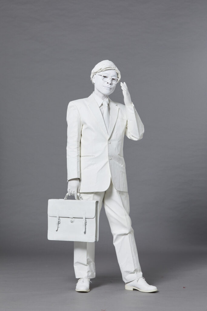 全身真っ白の、人間彫刻「白リーマン」。