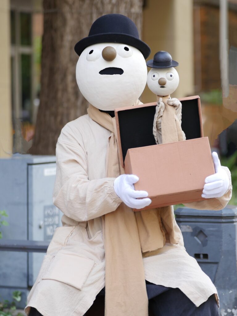 大道芸腹話術で皆さまを笑顔に!パントマイムパフォーマーのMrふじやん。が、ユニークなキャラクターの腹話術人形と軽妙なトークで新たなパフォーマンスをエンカメから、お届けいたします。